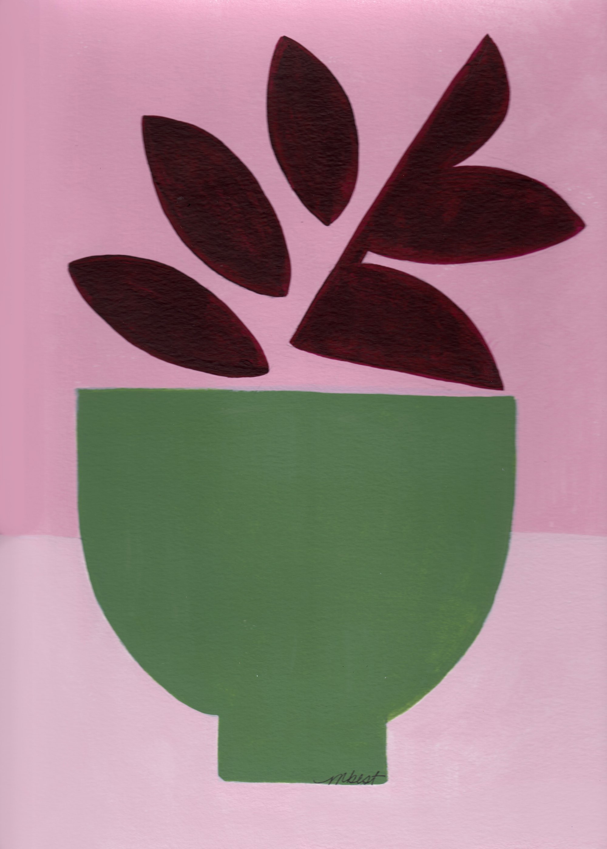 Original Art. Acrylic on Paper. Heavyweight Watercolor Paper, 140lb (300 gsm). Pink. Green. Burgundy.